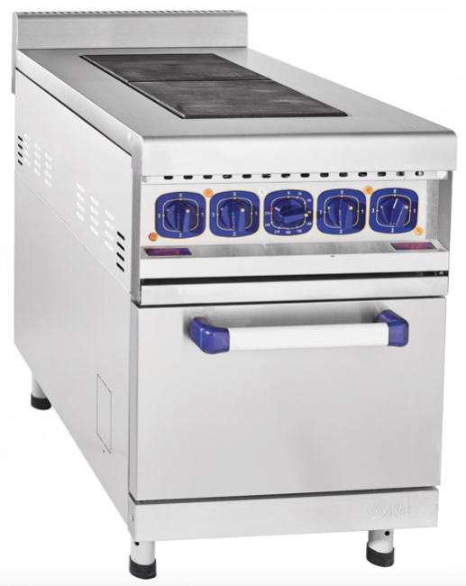 Плита электрическая профессиональная с жарочным шкафом Abat ЭП-2ЖШ (71000000948) двухконфорочная для приготовления первых, вторых и третьих блюд традиционным способом в наплитной посуде и выпечки мелко штучных кулинарных изделий в кафе, ресторанах, столовых, кулинариях и других предприятиях общественного питания и торговли. Может устанавливаться и использоваться отдельно или в составе тепловой линии.