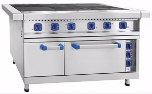 Плита электрическая промышленная ЭП-6ЖШ - элемент модульной тепловой линии Абат 900. Шесть чугунных конфорок прямоугольной формы 295x417 мм с ТЭНами в качестве нагревательных элементов. Плоские конфорки образуют сплошную рабочую поверхность позволяя без труда передвигать рабочие емкости по поверхности плиты. Под конфорками расположен выдвижной поддон для сбора жидкости. В нижней части плиты расположен жарочный шкаф из углеродистой стали с раздельной регулировкой нагрева верхних и нижних ТЭНов. Регулируемые по высоте ножки.