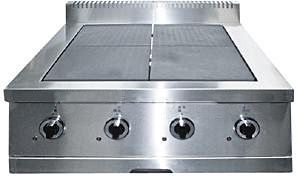Плита электрическая, 4 квадратные чугунные конфорки, настольная. Размеры конфорки 300х300мм, мощность – 2.5кВт. Мощность конфорки регулируется ступенчато – 600Вт – 1400Вт – 2500Вт. При производстве плиты использованы комплектующие европейских производителей: конфорки произведены в Италии, пакетные переключатели в Германии.