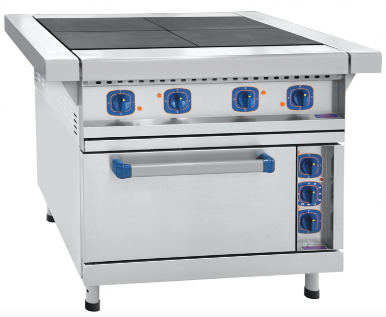 Плита электрическая профессиональная с жарочным шкафом Abat ЭП-4ЖШ-Э (71000001944) четырехконфорочная для приготовления первых, вторых и третьих блюд традиционным способом в наплитной посуде и а также для жарки полуфабрикотов из мяса, рыбы, овощей и выпечки мелко штучных кулинарных изделий в кафе, ресторанах, столовых, кулинариях и других предприятиях общественного питания и торговли. Может устанавливаться и использоваться отдельно или в составе тепловой линии.