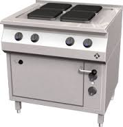 Плита электрическая с духовым шкафом вместимостью 1 GN1/2, линии приготовления HotLine. 4 квадратные выступающие конфорки со скругленными углами размером 220х220 мм и мощностью 4х2600 Вт. Плита ооснащена 7-позиционными переключателями, предохранительным термостатом, термостатом духовки для прямого верхнего и косвенного нижнего нагрева, сигнальными индикаторами с термореле. Для удобства перемещения наплитной посуды высота конфорок и кромки одинакова, расстояние между конфорками минимально. Протекторы автоматически сокращают мощность неиспользуемых конфорок на 50% и защищают пустую посуду от перегрева. Размер духового шкафа - 535x520x250 мм. Рабочая температура духовки - от +50С до +300С. Мощность духовки - 4,5 кВт. Рабочая камера изготовлена из хромоникелевой стали и имеет съемные направляющие для облегчения чистки. Дверца шкафа имеет отверстие для выпуска пара. В комплекте - 1 противень размером 1 GN1/2 для выпечки и 1 полка-решетка размером 1 GN1/2 из хромоникелевой стали.
