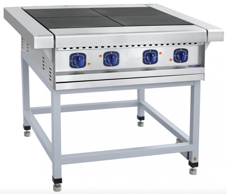 Плита электрическая промышленная ЭП-4П - является одним из элементов модульной тепловой линии Абат 900. Четыре чугунные конфорок прямоугольной формы 295x417 мм с ТЭНами в качестве нагревательных элементов. Плоские конфорки образуют сплошную рабочую поверхность позволяя без труда передвигать рабочую посуду по поверхности плиты. Под конфорками расположен выдвижной поддон для сбора жидкости. На открытой подставке, без жарочного шкафа.