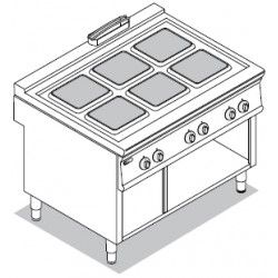 Плита напольная GASTRORAG LEQ-96VE электрическая оснащена 6 квадратными комфорками. Корпус выполнен из нержавеющей стали. Нейтральный закрытый духовой шкаф.