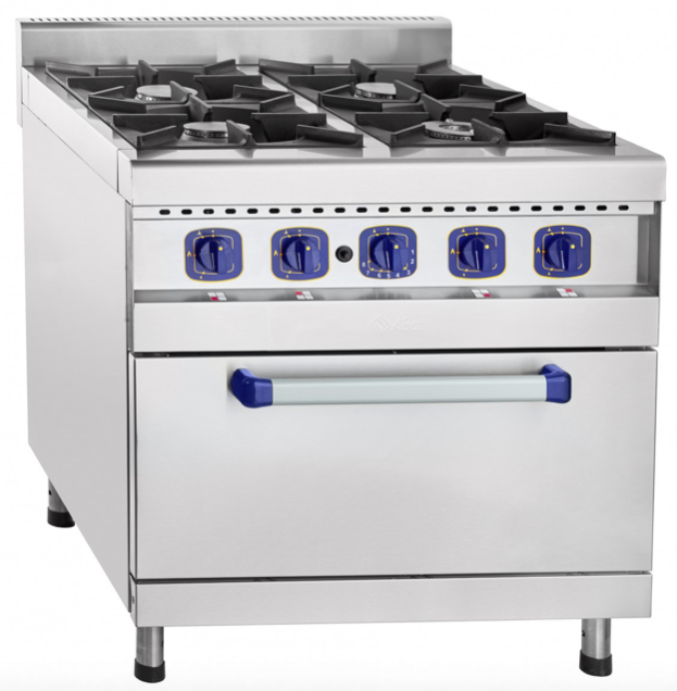 Плита газовая профессиональная четырехгорелочная Abat ПГК-49ЖШ (21000801314) с жарочным шкафом предназначена для приготовления первых, вторых и третьих блюд в наплитной посуде, а также для жаренья и варки полуфабрикатов из мяса, рыбы, овощей в кафе, ресторанах, столовых и других предприятиях общественного питания и торговли.