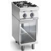 Плита газовая 2-х конфорочная с автоподжигом, на открытом стенде, оснащена эмалированным жиросборником и чугунными подставками для посуды. У каждой конфорки - независимый терморегулятор. Расход газа: сжиженный 0,867м3/ч, магистральный 1,164м3/ч. Электроподжиг работает от батарейки АА. Благодаря закругленным углам и специальной системе, которая предотвращает просачивание жидкости, значительно упрощается чистка оборудования. Все функциональные элементы вынесены на переднюю панель. Одна конфорка - 7,45кВт, вторая конфорка - на 5кВт.