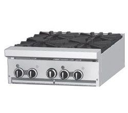 Плита газовая настольная с 4-мя конфорками. Размер всей рабочей поверхности – 600х686мм. Мощность одной конфорки – 7610Вт. Каждая конфорка имеет независимый регулятор газа, съемную чугунную решетку размером 305х345мм, защиту от случайного угасания пламени. Открытые конфорки поджигаются вручную. Каждая рабочая секция шириной 305мм оснащена штампованным съёмным жиросборником, днище которого имеет углубления. Вдоль конфорок располагается нейтральная поверхность для посуды, шириной 127мм, из нержавеющей стали. Лицевая и боковые стороны плиты, задний борт высотой 238мм изготовлены из нержавеющей стали. Ножки плиты высотой 102мм изготовлены из нержавеющей стали и регулируются по высоте. Оборудование работает на пропане или природном газе (указать при заказе). Мощность: 104000 btu/ч.