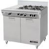 Плита газовая оснащена 4-мя конфорками и плоской поверхностью 288х962 мм, жиросборником из нержавеющей стали, закрытым стендом с 2 дверцами. Внутренние размеры стенда – 665х773х519 мм. Каждая конфорка имеет съемную чугунную решетку. Лицевая часть плиты и боковые стороны выполнены из нержавеющей стали. Вдоль конфорок располагается нейтральная поверхность для посуды, глубиной 191мм, из нержавеющей стали. Плита работает на сжиженном газе пропан-бутан. Расход газа: 118000BTU/hr. Хромированные регулируемые по высоте ножки высотой 152 мм, задним бортиком высотой 254 мм.