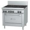 Плита газовая с 6-ю конфорками, с 1 жарочным шкафом. Размеры рабочей поверхности – 900х686 мм. Внутренние размеры шкафа – 667х660х330 мм. Температура шкафа регулируется термостатом до +260С. Мощность одной конфорки – 7610Вт. Мощность духовки - 11130Вт. Каждая конфорка имеет съемную чугунную решетку размером 305х345мм, защиту от прекращения подачи газа, электро-поджиг. Каждая рабочая секция шириной 305 мм оснащена съёмным жиросборником. Вдоль конфорок располагается нейтральная поверхность для посуды, шириной 127 мм, из нержавеющей стали. Внутренняя поверхность шкафа полностью покрыта фарфоровой эмалью. Никелированные съемные боковые решетки с направляющими позволяют устанавливать полки-решетки в 3 положениях. Шкаф комплектуется 1 никелированной полкой-решеткой. Ручка духового шкафа жаропрочная и холодная на ощупь. Лицевая и боковые стороны плиты, дверца духовки, задний борт высотой 238мм изготовлены из нержавеющей стали. Ножки плиты высотой 152мм изготовлены из нержавеющей стали и рег