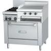 Плита газовая с 2-мя конфорками, рабочей поверхностью 576х962мм с 2 терморегуляторами, жиросборник из нержавеющей стали, жарочный шкаф. Каждая открытая конфорка имеет съемную чугунную решетку. Жарочный шкаф (мощностью 10250Вт) имеет пьезо-искровое зажигание. Рабочая температура шкафа – +66...+260С. В комплекте 1 полка-решетка. Размер рабочей камеры шкафа - 667х737х343 мм. Решетка шкафа может устанавливаться в 4 положениях по высоте. Ручка шкафа жаропрочная и холодная на ощупь. Внутренняя поверхность рабочей камеры - эмалированная. Лицевая часть плиты и боковые стороны выполнены из нержавеющей стали. Вдоль конфорок располагается нейтральная поверхность для посуды, глубиной 191мм, из нержавеющей стали. Оборудование работает на сжиженном газе пропан-бутан. Расход газа: 132000BTU/ч. Комплектуется хромированными регулируемыми по высоте ножками высотой 152 мм, задним бортиком высотой 254 мм.