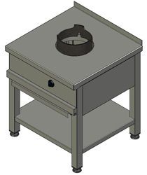 Плита газовая Wok Heidebrenner KSW 01 для азиатской кухни с бортом, чугунной WOK-насадкой артикул 70560, 1 «бородавочной» горелкой мощностью 8700Вт оснащена открытым стендом. Диаметр насадки - 270мм, вес - 3,8кг. Высота насадки над столешницей - 60мм. Насадка подходит для Вок-сковород до Ø400мм. Плита с термоэлектрической защитой от утечки газа и с автоматическим газовым запальником сделана из нержавеющей стали. Стенд имеет нижнюю сплошную полку. Подключение к магистральному газу.