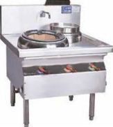 Плита газовая изготовлена из нержавеющей стали и имеет две рабочие камеры: под вок с диаметром конфорки 315 мм (для wok-сковород диаметром от 400мм.) и для подогрева воды (мармит). Вок - сковорода с выпуклым днищем с касательным расположением форсунок в горелке. Внутренняя поверхность горелочного пространства и верхняя поверхность плиты выложены из огнеупорного камня, что понижает ее прогреваемость и снижает расход воды, необходимый для охлаждения. Спецификой китайской плиты является конструкция конфорки, рассчитанная на более мощное пламя и большую площадь горения, что обеспечивает повышенную эффективность нагрева. Плита работает на сжиженном нефтяном (балонном) газе (пропан-бутан). Потребление газа - 0,7м3/ч или 1,4кг/ч. Дополнительный комплект для подключения к магистральному газу. Высота без заднего борта - 800 мм.