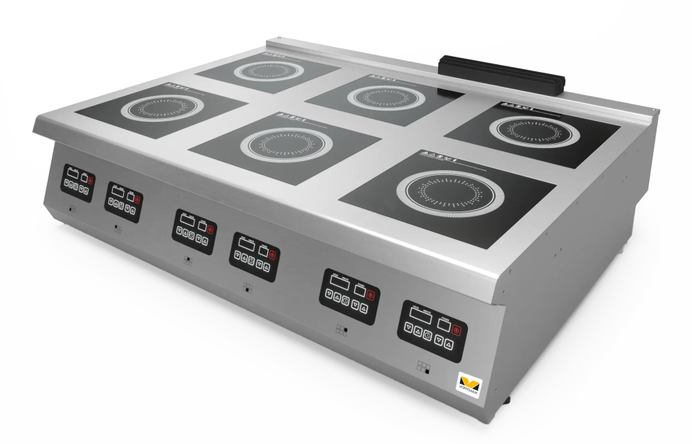 Плита индукционная Vortmax SEI 712 — это профессиональное настольное оборудование с шестью независимыми зонами нагрева, предназначенное для интенсивного использования на предприятиях общественного питания.