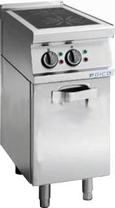 Плита начинает работать на 85% своей мощности, как только на поверхность будет установлена соответствующая посуда. Нагрев прекращается автоматически и сразу же, как только посуда будет убрана с поверхности. Специальная система предотвращает просачивание жидкости. Все функциональные элементы вынесены на переднюю панель. Ножки из нержавеющей стали регулируются по высоте. Дверцы стенда имеют магнитные защёлки. Оборудование изготовлено из нержавеющей стали и может использоваться как независимо, так и в составе линии приготовления 9001 серии.