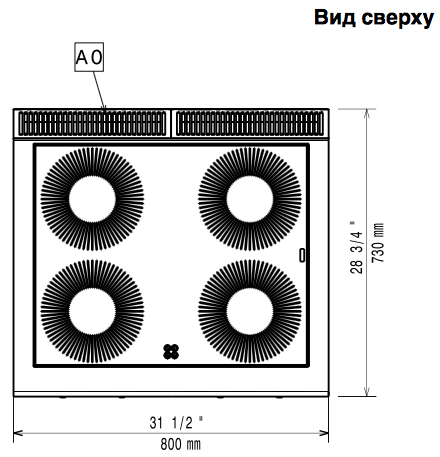 Стеклокерамическая рабочая поверхность толщиной 6 мм с 4 рабочими зонами мощностью по 5 кВт с независимым управлением.
