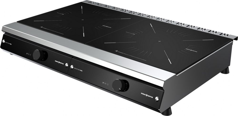 Плита индукционная настольная Новая Энергия ICD9 - 2 PRO (900) профессиональная для кафе, ресторанов, столовых и других предприятий общественного питания. Две конфорок. Общая мощность 7 кВт. Устанавливается на стол. Необходимо использование специальной посуды, подходящей для индукционных плит.