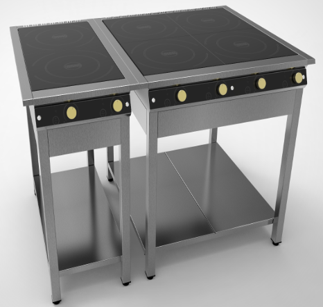 Плита индукционная Новая Энергия ICG9 - 6 PRO (900) профессиональная, для использования в кафе, ресторанах, столовых и других предприятиях общественного питания. Шесть конфорок. Общая мощность 21 кВт. Устанавливается на подставку (приобретается отдельно). Необходимо использование специальной посуды, подходящей для индукционных плит.