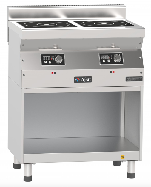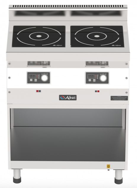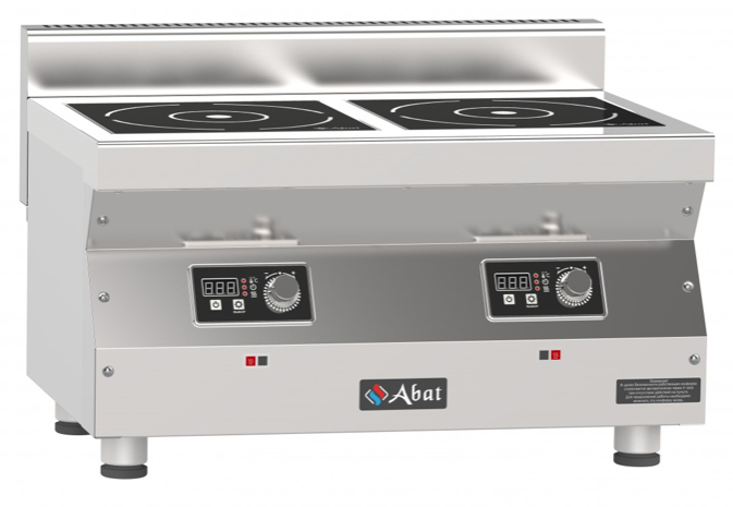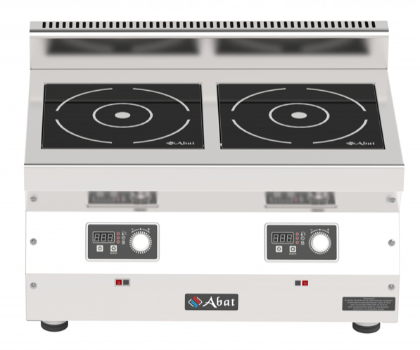 Плита индукционная настольная Abat КИП-25Н-5,0 (артикул 71000019993) 2-х конфорочная с суммарной мощностью 10 кВт и продольным расположением конфорок. 500 серия. Предназначена для приготовления различных блюд в наплитной посуде в кафе, ресторанах, столовых и других предприятиях общественного питания и торговли.
