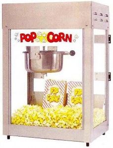 Попкорн аппарат настольный имеет каркас из нержавеющей стали, котел с поверхностью из нержавеющей стали и ТЭН для подогрева готовой продукции. Объем котла - 6 унций. Производительность - до 3,8 кг/ч (135 порций по 28 г). Разовая загрузка - 170 г.