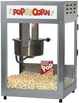 Попкорн аппарат настольный имеет каркас из нержавеющей стали, котел с поверхностью из нержавеющей стали и съемные панели из закаленного стекла. Объем котла - 12/14 унций. Производительность: 6,7 - 7,8 кг/ч (240/280 порций по 28 г). Разовая загрузка - 336/392 г.