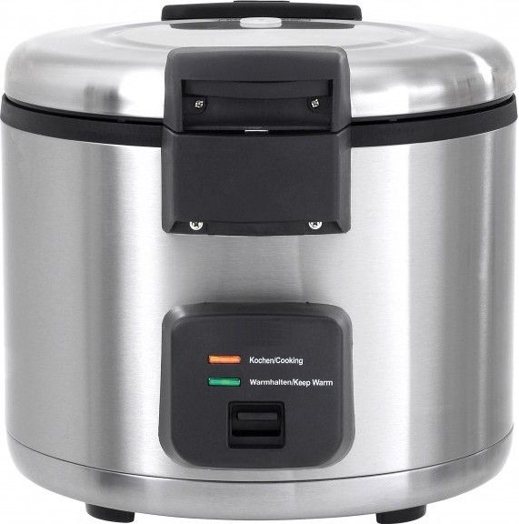 Рисоварка профессиональная электрическая, настольная из нержавеющей стали вместимостью 8 л оснащена внутренним жаропрочным контейнером, с функций подогрева по всему объему и автоматическим режимом поддержания риса в разогретом состоянии. Рисоварка имеет световые индикаторы сигнализирующие о процессе приготовления и о режиме подогрева, в который рисоварка переходит автоматически по окончании приготовления риса. Большая рисоварка для приготовления риса в суши-барах, в ресторанах японской и китайской кухни, столовых и везде, где требуется готовить большое количество риса. Внутренние размеры – диаметр -325 мм, высота -232 мм, в комплекте: мерный стакан, ложка для риса, ложка для перемешивания.