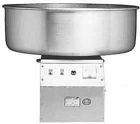 Аппарат для производства сахарной ваты, нагрев тэном, самоочищающаяся головка диаметром 127мм, автоматическая настройка температуры, производительнсть: 3.6 - 4.5 кг/ч, алюминиевый ловитель, зажимы и сетка - в комплекте. Без спирали и колец, имеет облегченное основание из нержавеющей стали, две боковые ручки для транспортировки и 4 щетки из меди и углерода. Аппарат упакован в 2 коробки.