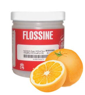 Комплексная пищевая смесь Flossine Orange в жестяной банке с пластиковой крышкой, предназначена для приготовления оранжевой сахарной ваты со вкусом и ароматом апельсина. Flossine не засоряет нагревательные элементы ленты. Перед использованием необходимо 1-2 ст.л. тщательно перемешать с 4.5кг гранулированного сахара, или смешать все содержимое банки со 113 кг сахара. Из содержимого банки получается 4200 порций сахарной ваты. Рекомендовано периодически менять цвет сахарной ваты.