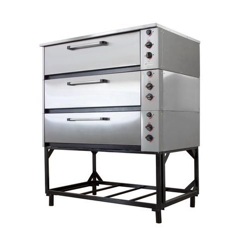 Шкаф жарочно-пекарский 3-х секционный, оцинкованная сталь 16,5кВт, 380В, площадь пода камеры 0,77м², внутр. Размеры камеры 1095х725х180, противни GN2/1(530х650мм, глуб. До150мм) 6шт, 290кг