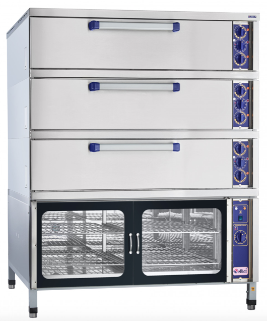 Шкаф электрический пекарский Abat ЭШ-3К (артикул 71000000177) трехсекционный без пароувлажнения предназначен для выпечки кондитерских и хлебобулочных изделий в ресторанах, школьных столовых, пекарнях и предприятиях общественного питания, самостоятельно или в составе технологической линии.