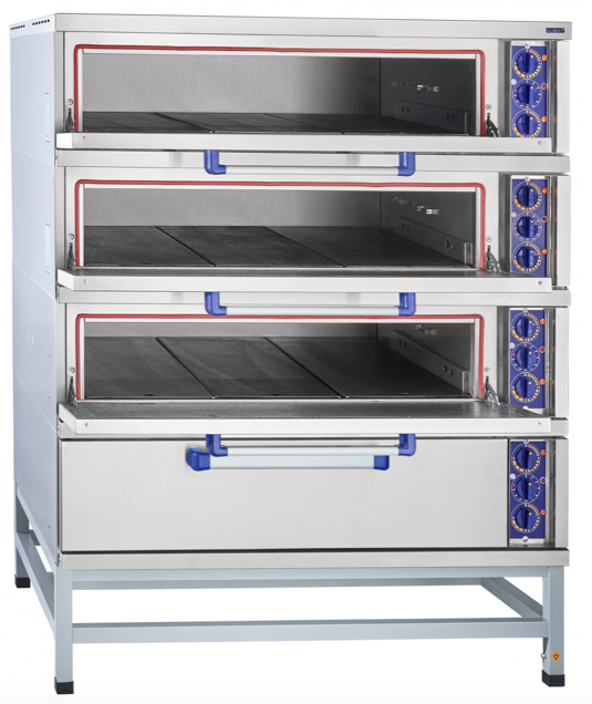 Abat ЭШ-4К шкаф подовый пекарский (71000000178) электрический четырехсекционный 900 серии предназначен для выпечки кондитерских и хлебобулочных изделий. Имеет раздельную регулировку мощности верхнего и нижнего блоков. Рабочий диапазон от 65 до 207°C. Аварийный терморегулятор предохраняет от перегрева. Шкаф имеет регулируемые по высоте ножки. Вес 510 кг. Стальной под.