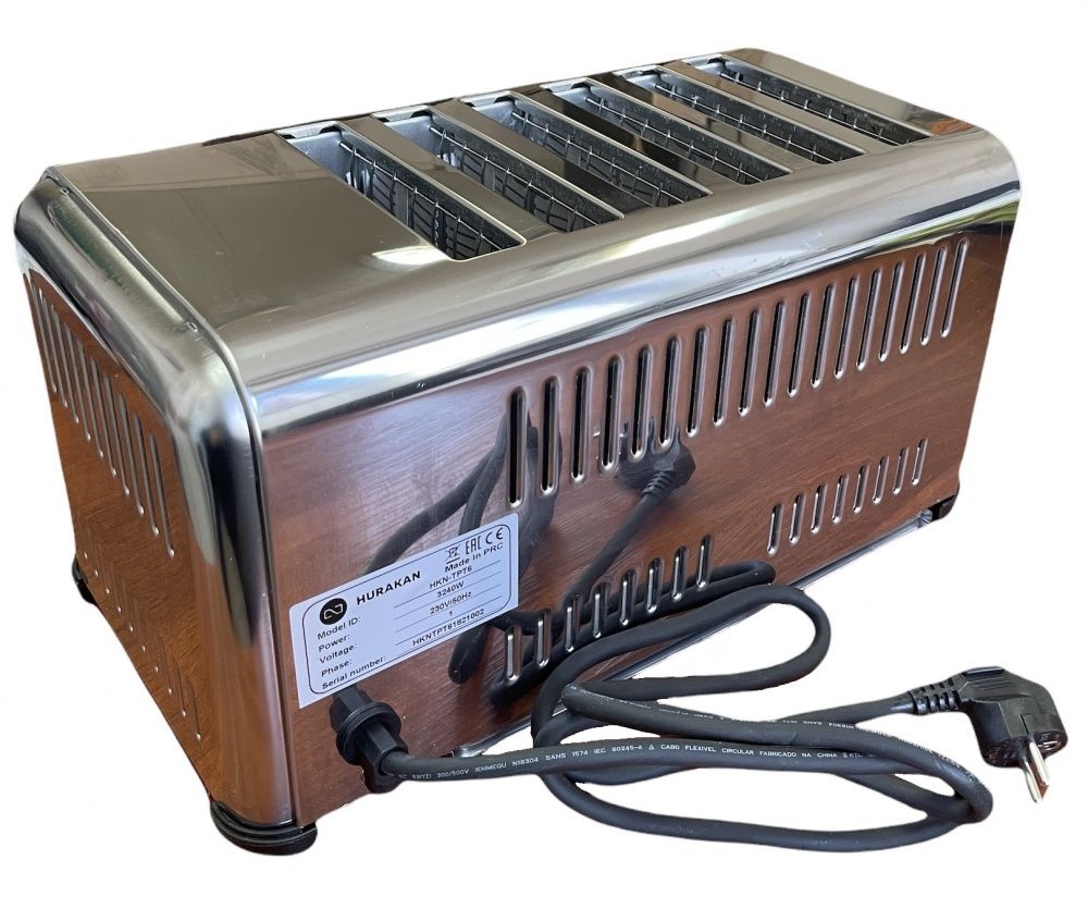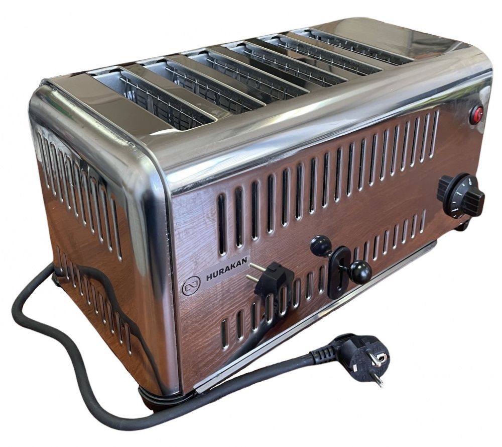 Тостер Hurakan HKN-TPT6 традиционный с таймером, на 6 ломтиков хлеба, для профессионального использования в кафе, ресторанах, столовых и других предприятиях общественного питания и торговли.