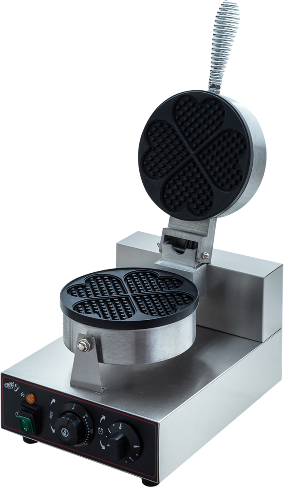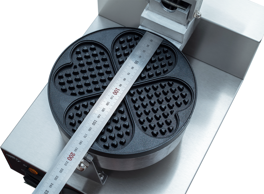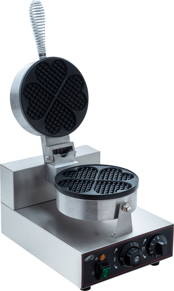 Вафельница Crazy Pan CP-WFM09 HEART, профессиональное оборудование для приготовления вафель в форме сердца. Идеальна для кафе, фуд-кортов, точек стрит-фуда, кондитерских и других предприятий общепита. Электромеханическое управление. Напряжение 220В, мощность 1кВт. Температурный режим 50-300 °С. Материал корпуса нержавеющая сталь. Рабочая поверхность: чугун с антипригарным покрытием. Размер одной вафли 80x80x15 мм. ТЭНов 2 шт. Размеры: 250x370(450)x250(560) (в скобках размеры в открытом состоянии) мм. Вес: 5,5 кг.