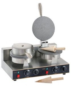Вафельница GASTRORAG ZU-XGP-2E - 2-секционная, для тонких вафель, диаметр пластин 210 мм, в комплекте с 2 деревянными конусами для изготовления вафельных рожков