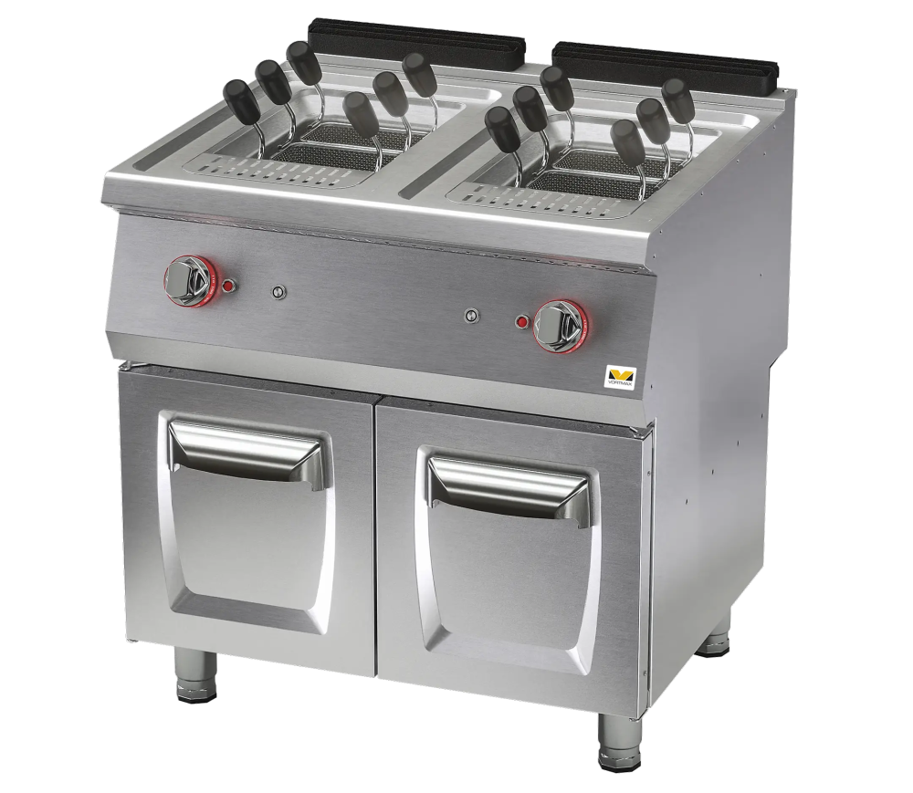 Макароноварка Vortmax SGP 78 — это профессиональное газовое оборудование высокой производительности, предназначенное для использования на кухнях заведений общественного питания с высокой загрузкой: ресторанов, кафе, столовых и фастфуд-сетей. Она входит в 700-ю серию тепловых линий Vortmax. Модель SGP 78 используется для быстрого и эффективного приготовления разнообразных блюд, требующих варки в воде.Эффективна при готовке всех видов макаронных изделий (паста, спагетти), пельменей, вареников, овощей, морепродуктов и крупяных гарниров. Оборудование выполнено из нержавеющей стали с покрытием толщиной 15/10 мм. В конструкции предусмотрены автоматическая система заполнения водой, кран для подачи и слива. Подключение газа — через резьбу R 3/4", питание — 220 В. Корзины газовых моделей серии 700 несовместимы с корзинами электрических макароноварок.