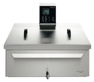 Julabo Diamond L - профессиональный погружной ротационный термостат для кафе, ресторанов, столовых и других общепитов. В комплект с емкостью 44 литра. VFD - дисплей. Три таймера. Диапазон рабочих температур: +20...+95°С с точностью до +/- 0,01°С. Возможна готовка по внутренней температуре продукта.
