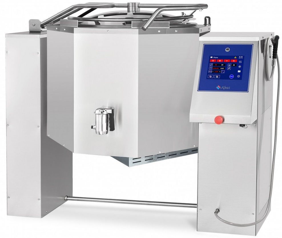 Котел варочный электрический Abat КПЭМ-200-ОМП со сливным краном (11000019856) с функциями опрокидывания, перемешивания и охлаждения. КПЭМ-200-ОМП со сливным краном предназначен для приготовления бульонов, соусов, десертов, вторых и третьих блюд. Продукты могут приготавливаться как с перемешиванием, так и без перемешивания.