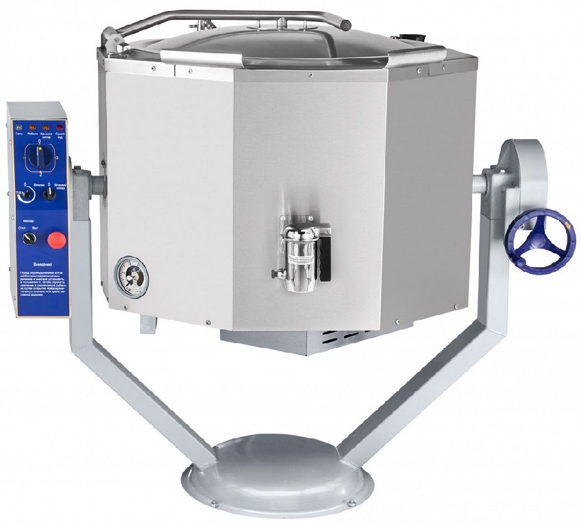 Котел пищеварочный электрический Abat КПЭМ-100-ОМР со сливным краном (11000019725) с функциями перемешивания и ручного опрокидывания. Промышленный опрокидывающийся котел КПЭМ-100-ОМР со сливным краном предназначен для приготовления бульонов, первых, вторых и третьих блюд. Используется в ресторанах школьных и других столовых, пищеблоках и других предприятиях общественного питания и пищевых производствах.
