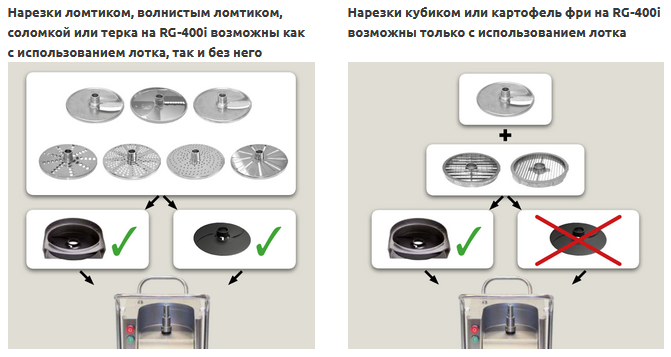 Используется только с овощерезками HALLDE RG-400i. Предыдущее поколение овощерезок - RG-400 с данным лотком не совместимо.